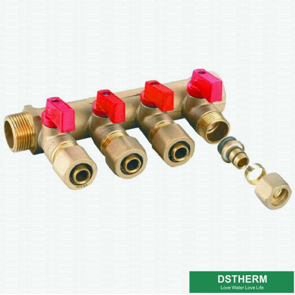 Product Name : Two Ways To Six Ways Brass Water Separators Manifolds For Pex Pipe Customized Logo For Hot Water Supplying